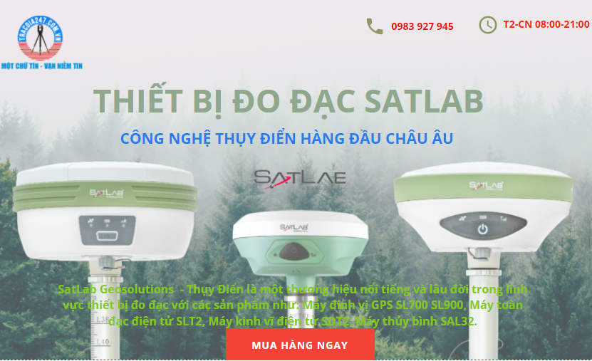 SatLab Geosolutions là một thương hiệu nổi tiếng và lâu đời trong lĩnh vực thiết bị đo đạc với các sản phẩm như: Máy đinh vị GPS RTK Satlab SL700 / Satlab SL900 / Satlab Freyja, Máy toàn đạc điện tử SLT2, Máy kinh vĩ điện tử SDT2, Máy thủy bình SAL32.