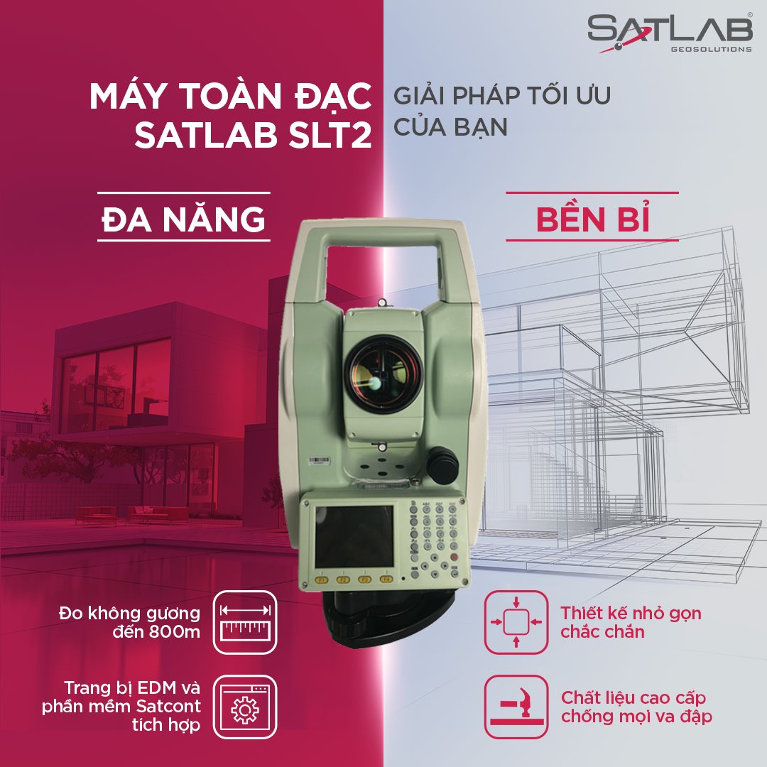 Máy toàn đạc điện tử Satlab SLT2 có EDM đo nhanh và mạnh mẽ (0,8 giây) được thiết kế để cung cấp độ chính xác nâng cao, khả năng làm việc hiệu quả với thiết kế đẹp mắt. Satlab SLT2 đo không gương lên tới 800m, đạt độ chính xác ±2".