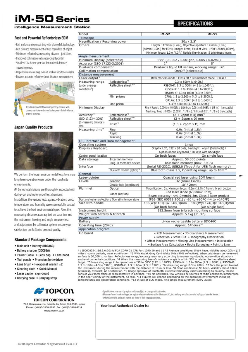 Máy toàn đạc điện tử Sokkia IM 55 có độ chính xác 5” và đo nhanh chỉ mất 0,9 giây. Sử dụng công nghệ EDM đo không gương, toàn đạc sokkia IM 55 có khả năng đo không gương lên đến 500m và lên đến 4.000m với gương. Bộ bù hai trục cung cấp các phép đo ổn định ngay cả khi bạn đang làm việc trên địa hình không bằng phẳng hoặc rung động.